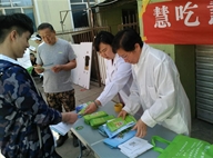 主题logo以草绿色、天蓝色等轻快的色调,渲染运动、活力的视觉效果;起舞的人形标志,象征健康的体重、灵活的身体和愉悦的心情;周围围绕着各色食物,体现健康的基础是均衡饮食和科学食物选择。整体效果冠以“慧吃慧动,健康体重”主题,成为图像的灵魂元素。