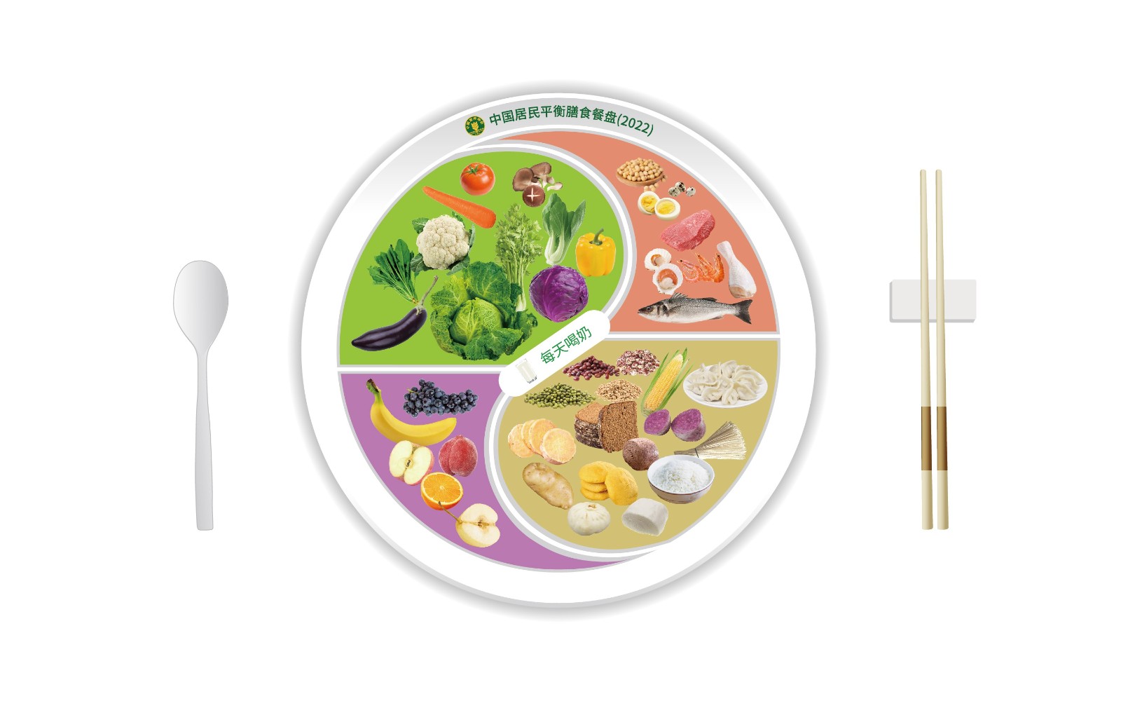中国居民平衡膳食宝塔、餐盘、算盘图形(2022版)