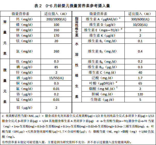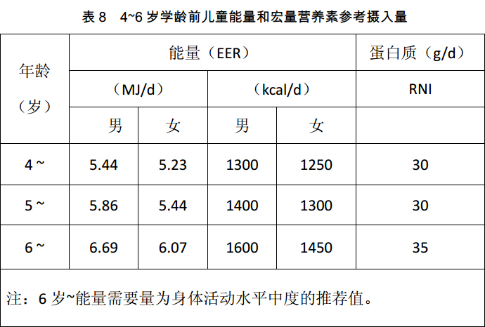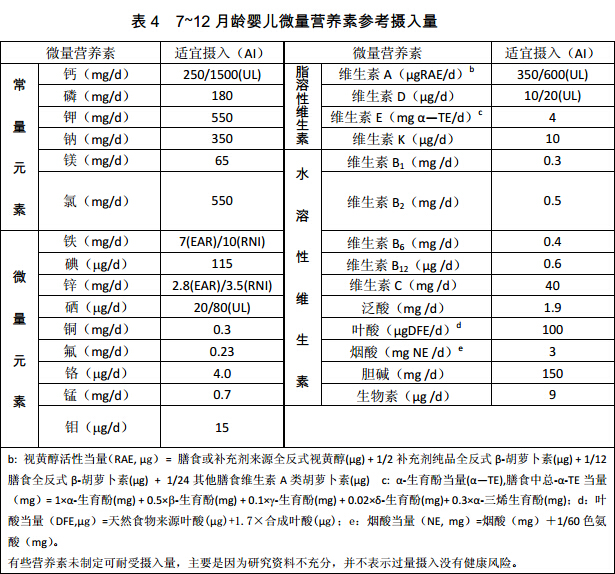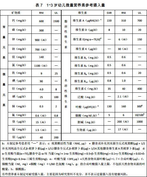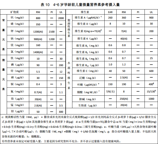 (以下表格中提供的数据最终以《2013版DRIs》书籍为准)