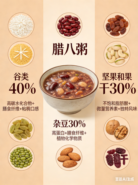 一碗腊八粥,承载着千年民俗文化,更凝聚着中国人顺应时节和关爱身体的养生智慧。无论是寒冬腊八的应景美食,还是日常三餐的营养选择,杂粮粥的健康密码,都藏在“杂而不乱、配而得当”的细节里。让我们在传承传统的同时,用科学的方式吃出健康,让营养与温暖伴随四季。
